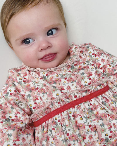 Este encantador vestido de interlock para recién nacido presenta un delicado estampado de flores y un volante que adorna el cuello y la cintura, aportando un toque dulce y elegante. Los puños cuentan con una suave goma que asegura un ajuste cómodo y seguro, mientras que la abertura trasera con botones a presión facilita el cambio de ropa sin molestias. Incluye leotardos a tono, confeccionados con una mezcla que garantiza elasticidad y suavidad para la piel sensible del bebé. Ideal para vestir a tu pequeño con estilo y comodidad desde sus primeros días. Composición: vestido 100% algodón; leotardos 80% algodón, 17% poliamida, 3% elastano.